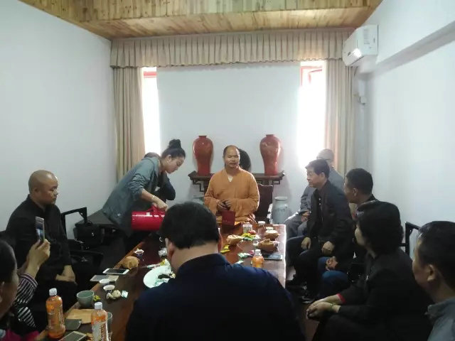 飲食素齋過后,純聞法師在方丈院會客室,與協會會長一行茶敘,參禪講學。為大家介紹了云居山·真如禪寺的歷史由來、發展及農禪特色。據介紹,云居山屬宗教游覽、休閑觀光的山岳型國家重點風景名勝區,為中國著 名佛教名山。真如禪寺乃千年禪宗祖庭,自唐憲宗元和三年肇基,秉承釋迦世尊“教外別傳,以心印心”之頓教法門,立“人人皆有佛性,皆可成佛”之大乘宗旨。寺院高僧輩出,禪風浩然。中國佛教協會第1任名譽會長虛云禪師、常務理事性福大和尚、全國政協委員海燈法師相繼擔任過該寺住持,原中國佛教協會會長一誠法師、傳印法師等大德都執掌過真如法席。